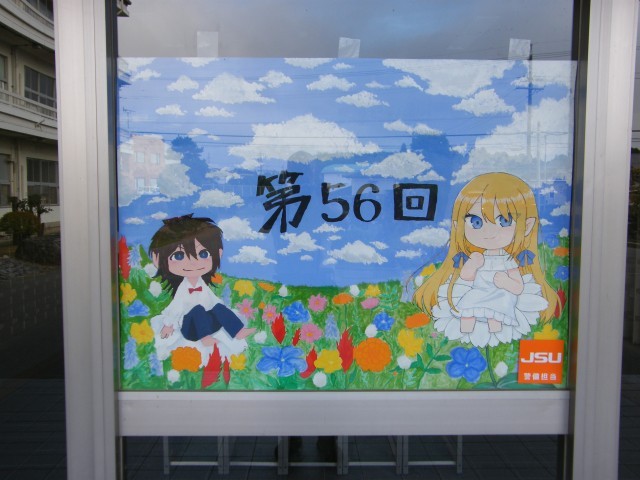 生徒昇降口には美術部の皆さんに描いていただいたウエルカムポスターが掲示されています。