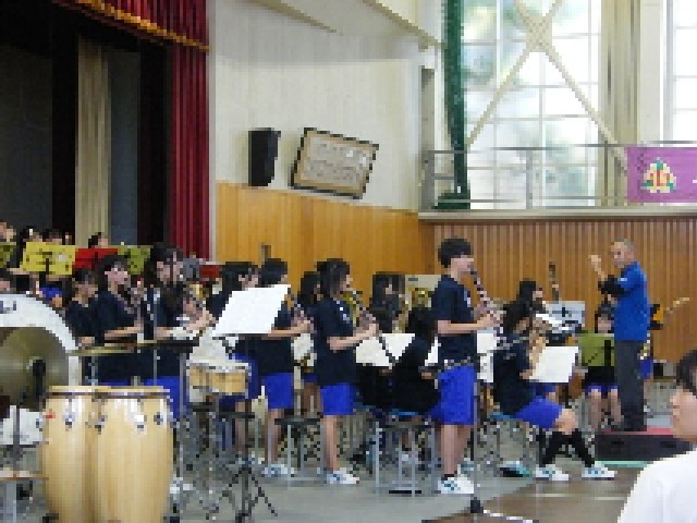 吹奏楽部の皆さんが「学園天国」「シングシングシング」「ミセスメドレー」とノリのよい曲を楽しく演奏していました。