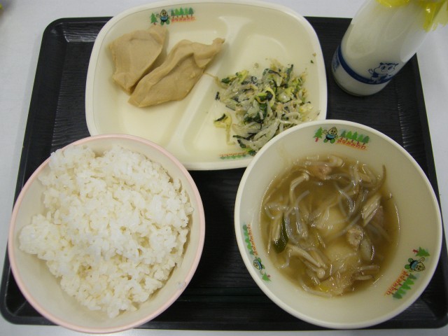 【献立】ごはん 牛乳 だまこもちなべ 凍り豆腐の含め煮 のりマヨサラダ