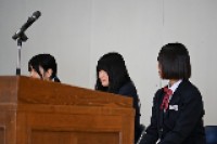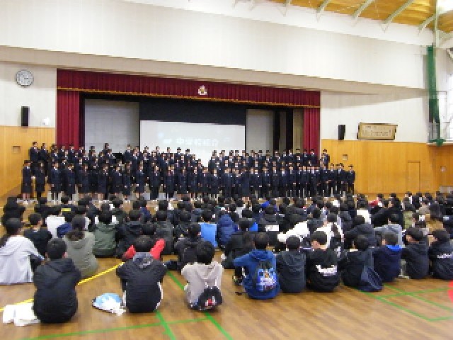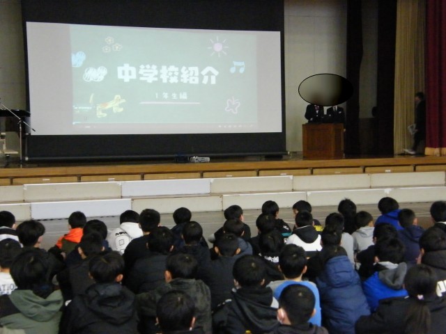 中学1年生の「先輩」から中学校校歌のプレゼントの後、中学1年生の行事などについて説明がありました。