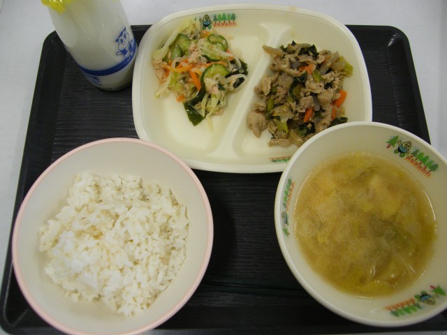 【献立】ごはん 牛乳 どさんこ汁 ごぼとん丼の具 海藻サラダ