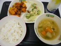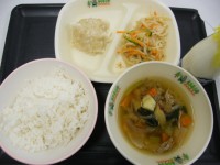 10月17日(金)の給食【献立】ごはん 牛乳 かきたま汁 とり肉のレモンソース ...