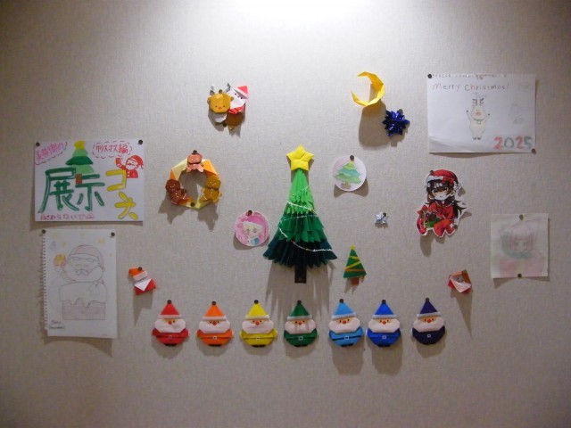 12月16日(火)美術部の皆さんが校内を明るくしてくれています。理科室棟の展示ス...